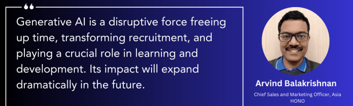 Arvind Balakrishnan pointed out three key areas where Generative AI is already making an impact: freeing up time, revolutionizing talent acquisition processes, and enhancing learning and development opportunities.