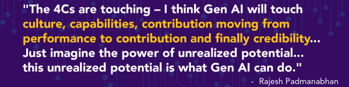 Generative AI's role in elevating the employee experience was a key focus, with panelists sharing examples of its application in personalized learning paths, performance recognition, and onboarding processes. The technology's ability to provide tailored experiences and real-time feedback was highlighted as a game-changer in employee engagement and satisfaction. Sheetal Sandhu touched on the importance of Gen AI in promoting diversity and inclusion, reducing biases in hiring, and fostering a culture of empathy and compassion. Generative AI is setting new standards for employee engagement and experience, offering personalized, inclusive, and responsive HR practices that meet the unique needs of each employee.