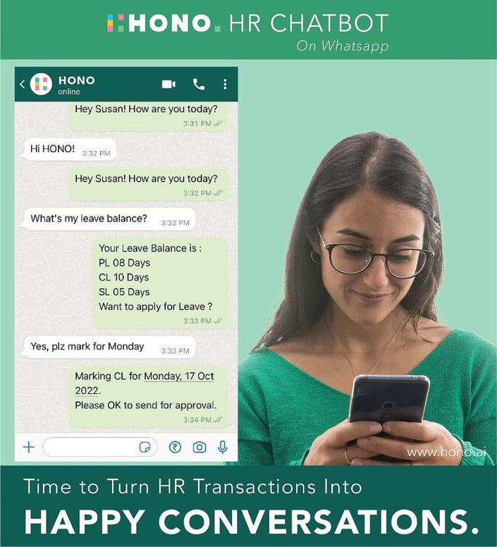 The premise of HONO HR ChatBot is simple - most employees are looking for a solution which can come to them (without them putting away whatever they are doing), a solution which is simple (as simple as requesting a friend in HR to help), a solution which can cut through the HR processes without circumventing them (like asking a genie to do it for them).