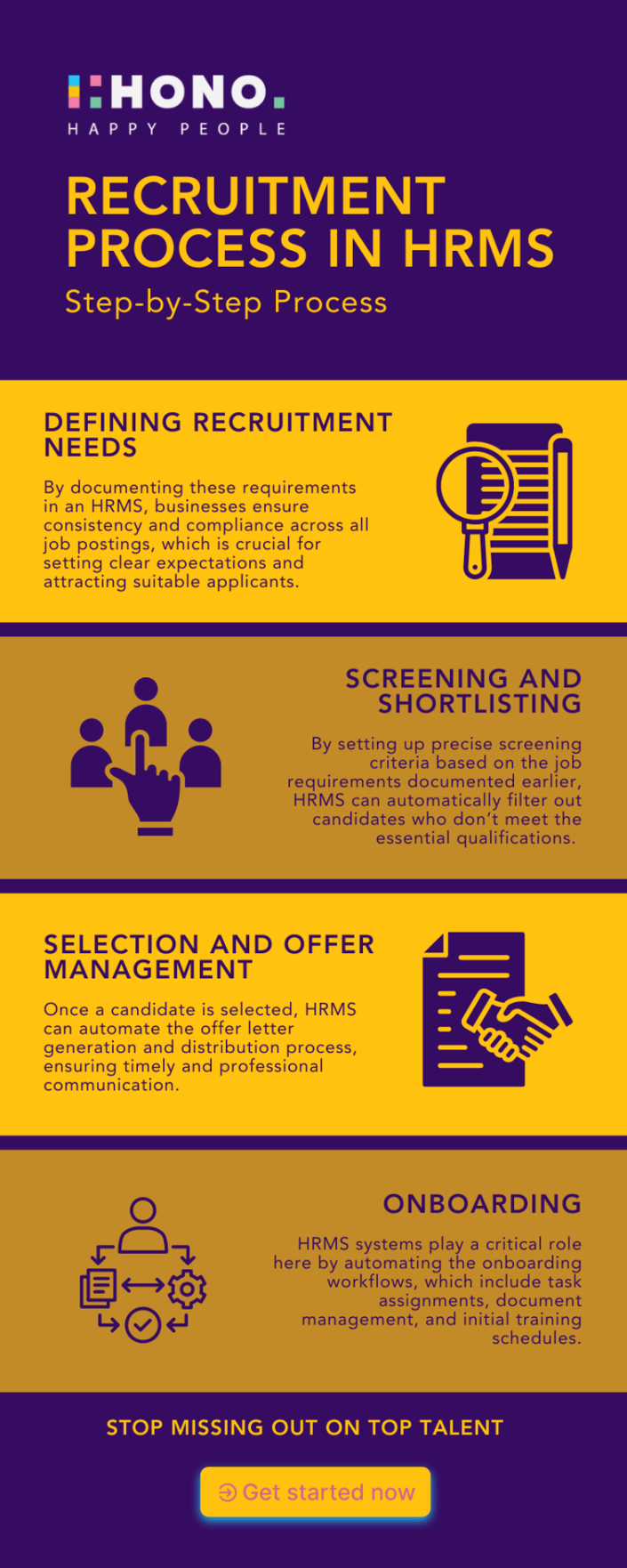 For organizations looking to take their recruitment process to the next level, HONO offers a comprehensive HRMS solution that streamlines recruitment and enhances employee engagement. HONO's platform is designed to integrate seamlessly into your existing HR workflows, providing advanced analytics, automated processes, and user-friendly interfaces that make managing recruitment easier than ever.