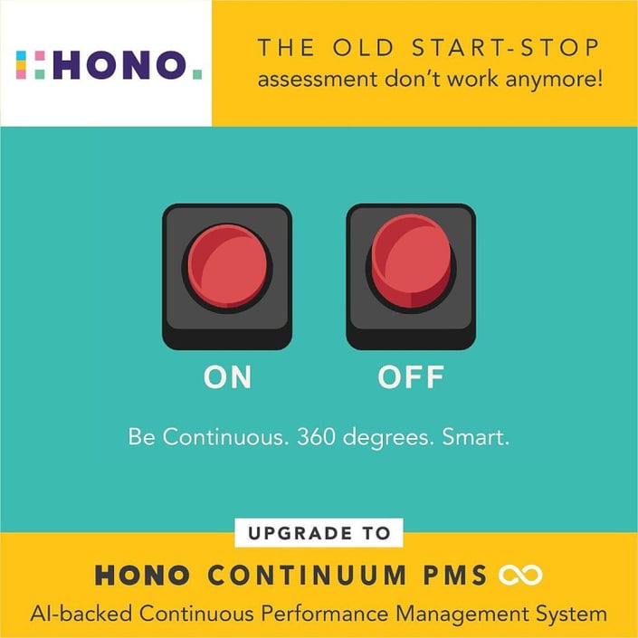 It’s called the HONO CONTINUUM PMS. The AI-backed HONO CONTINUUM is a Performance Management System built for continuous, all-year assessment with 360-degree multi-level feedback tools. It is a smart, agile, and modular, which allows businesses to continuously assess their employees through the year, set workflows and goals, track KPIs and KRAs, plan compensation budgets, course correct personnel wherever the system indicates with best actions, including skill-upgrade, and prepare for the future with system-assisted succession planning. Want to improve your workforce's performance with a comprehensive performance management system that includes goal setting, feedback, and recognition? Reach out to us today! The multifarious benefits of HONO CONTINUUM are beyond mere KPIs & KRAs, and include: